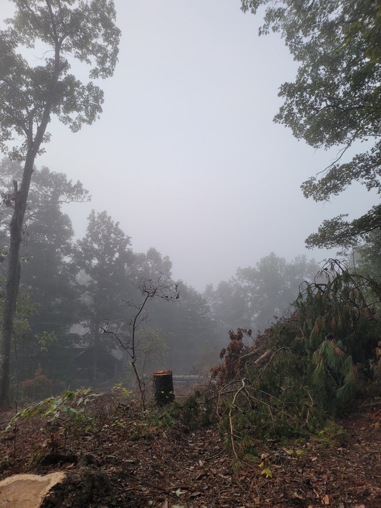 The plan sounded good. The mountain view on our property faces east and we want to orient the cabin so it catches the sunrise view. So the plan was to wake up at 5:00 AM and drive up to Townsend to watch the sunrise on our property. As we approached Maryville and looked east, we could see the sun starting to light up the morning sky and our anticipation grew. However, as we approached Townsend we met up with an unexpected nemesis…FOG! Oh no…hadn’t thought about that! So, we climbed our hill and sat around for about 30 minutes and the fog…got thicker. Then I got a great idea. Why don’t we head over to Cades Cove and drive the 11 mile loop road? When we get back, the fog will be gone. So, off we went. Until we saw the sign…CADES COVE LOOP ROAD CLOSED. Yep…closed for repaving until Tuesday, Sept 28th. Sometimes you take a road trip where everything seems to go wrong. So, we headed back home to Delano and back to bed.